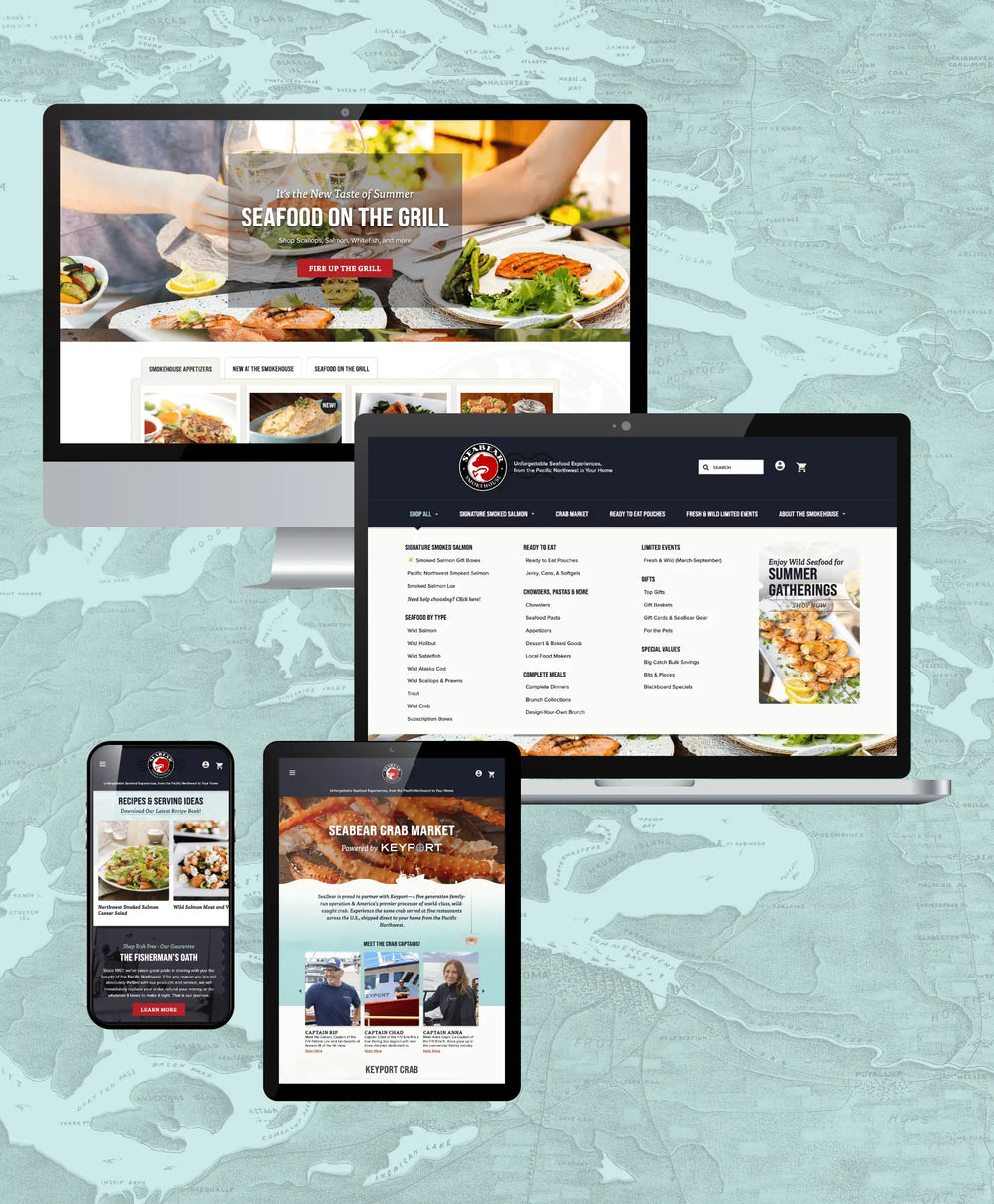 SeaBear, an authentic & traditional Pacific Northwest smokehouse, tasked Pure Strategic with designing a new website that presents a fresh, engaging introduction to new audiences, while remaining familiar to existing customers, all while embracing the unforgettable seafood experience that only SeaBear can provide.