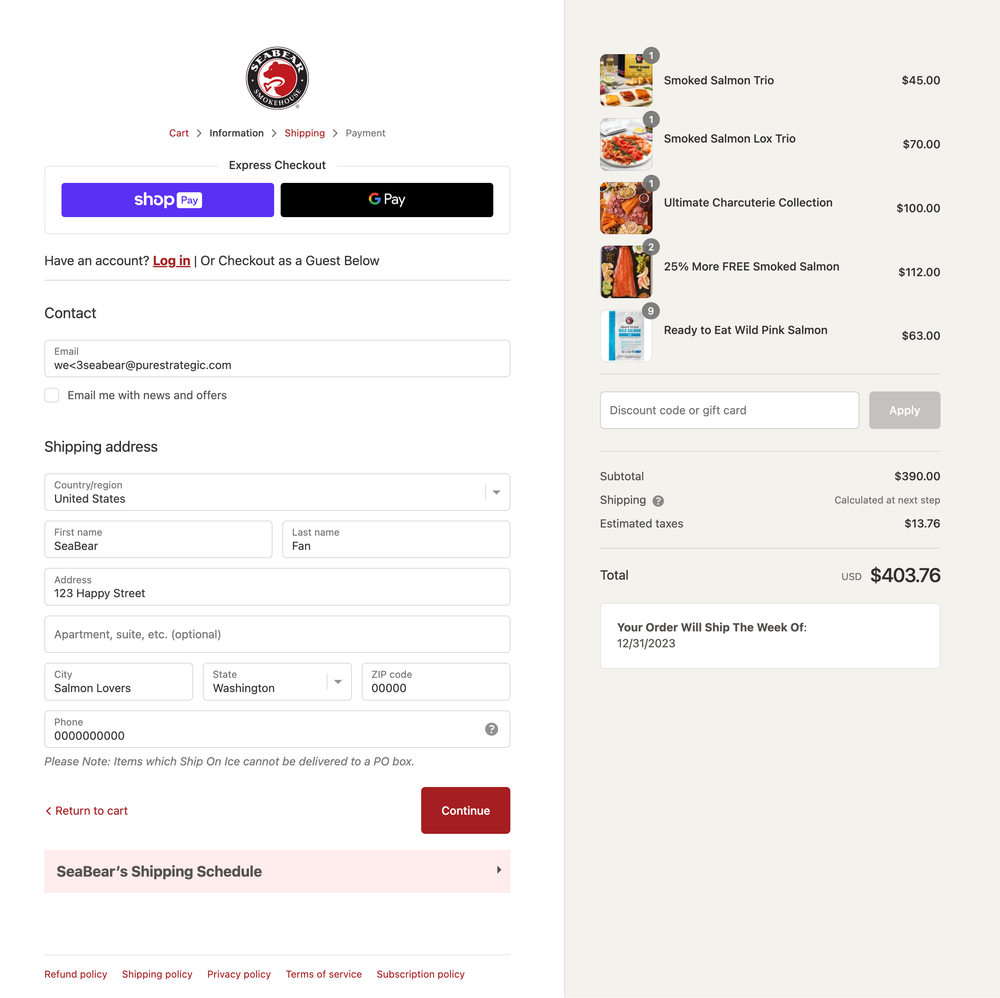 Armed with a clear objective and a profound grasp of the brand, it was time to dive into the task at hand. Harnessing SeaBears remarkable backstory, unwavering commitment to quality, and the promise of delivering an authentic smokehouse experience to individuals nationwide, we formed the bedrock of our strategy for shaping their new website experience. We embarked on crafting a website that authentically resonated with both existing and potential customers, accentuating the company's distinctive qualities to ensure a seamless and enjoyable shopping experience for all patrons.